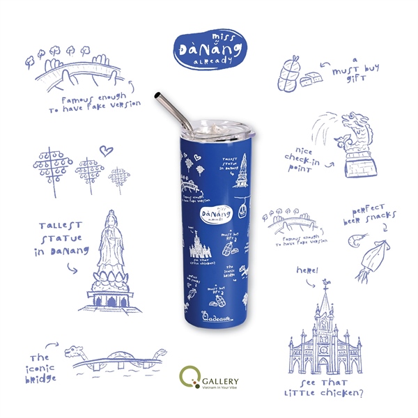 PW - QHEIGHTS - Bình giữ nhiệt – Miss Vietnam Already Đà Nẵng (xanh dương) + ống hút kim loại Dung tích 600ml