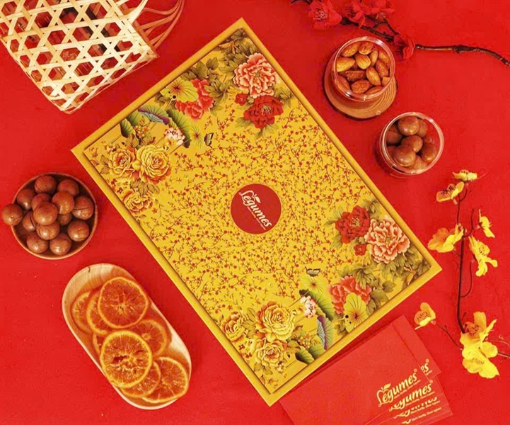 Vỏ hộp quà Hoa Xuân (vàng đỏ) tết 2024